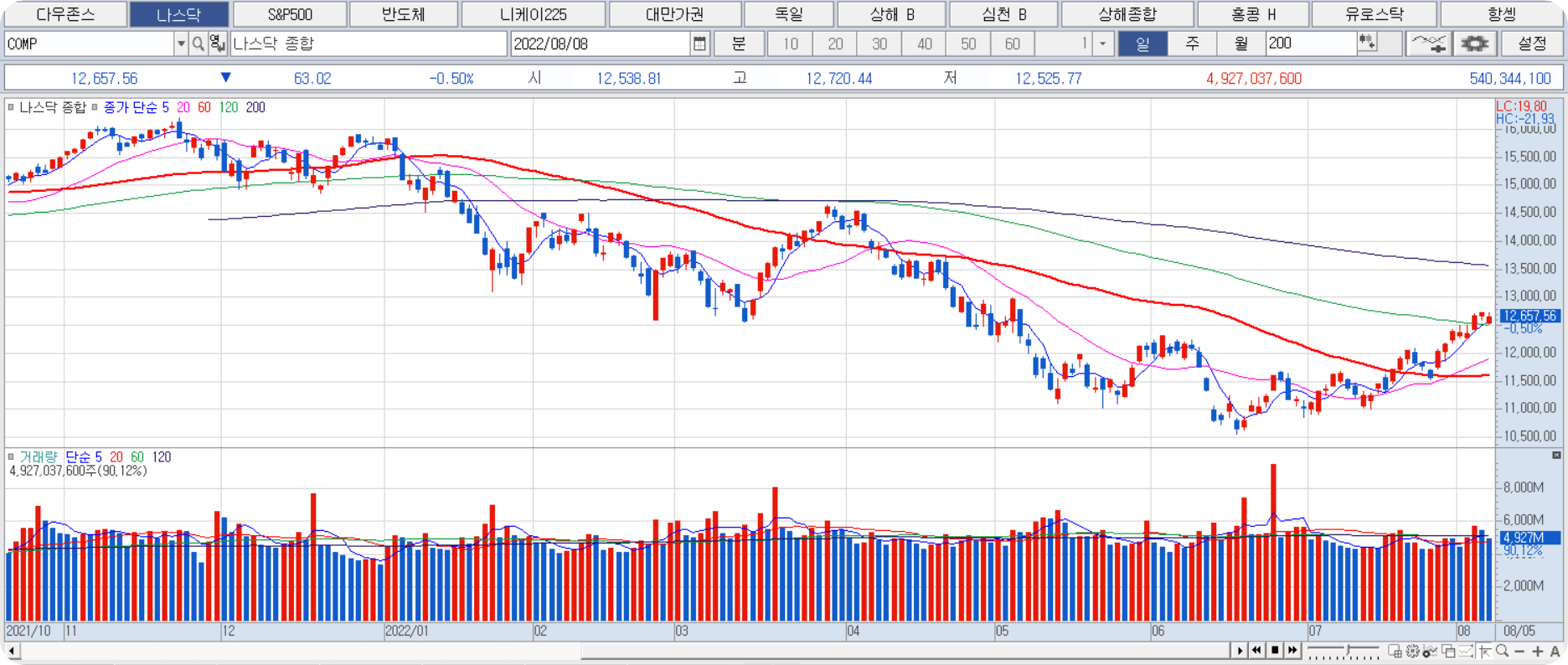 미국 비농업 고용이 52만 8천 명으로 집계되었으며 예상치보다 높게 나타났습니다. 미국 7월 실업률 3.5% 기록하며 팬데믹 이전 수준으로 복귀했습니다. 보우만 연준 이사는 수차례 0.75% p 금리인상을 지지한다고 말했습니다. 미국 상원에서 430억 달러 규모의 인플레이션 감축법을 통과시켰습니다. 중국의 7월 수출규모가 전년비 18% 증가했으며 석 달 연속 상승한 것으로 나타났습니다. 우크라이나가 곡물을 흑해를 통해 4척 추가 출항했습니다. 버크셔 해서웨이가 2분기 57조 원 순 손실을 기록했습니다.